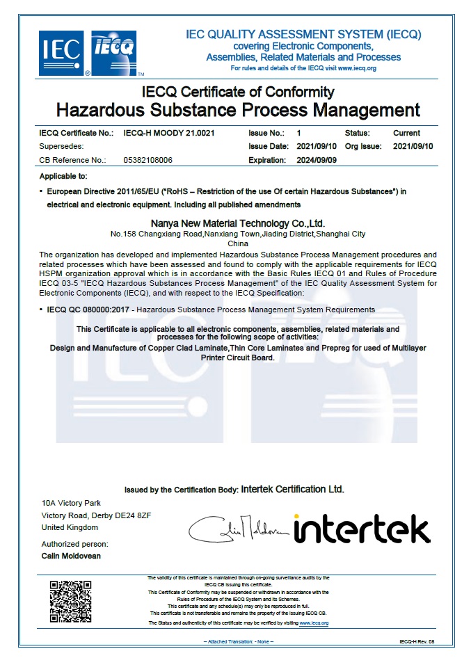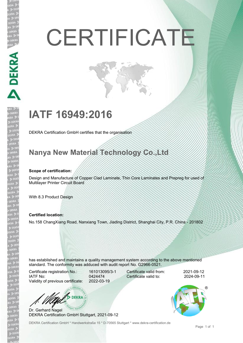 南亞新材始終堅持質量就是生命,持續不斷的改進生產技術和服務水平,不斷完善質量管理體系,務求滿足并超越不同客戶的要求和期望;經過不懈的努力,公司先后通過了ISO9001質量管理體系、 ISO14001環境管理體系和ISO45001職業健康安全管理體系的認證及改版升級。